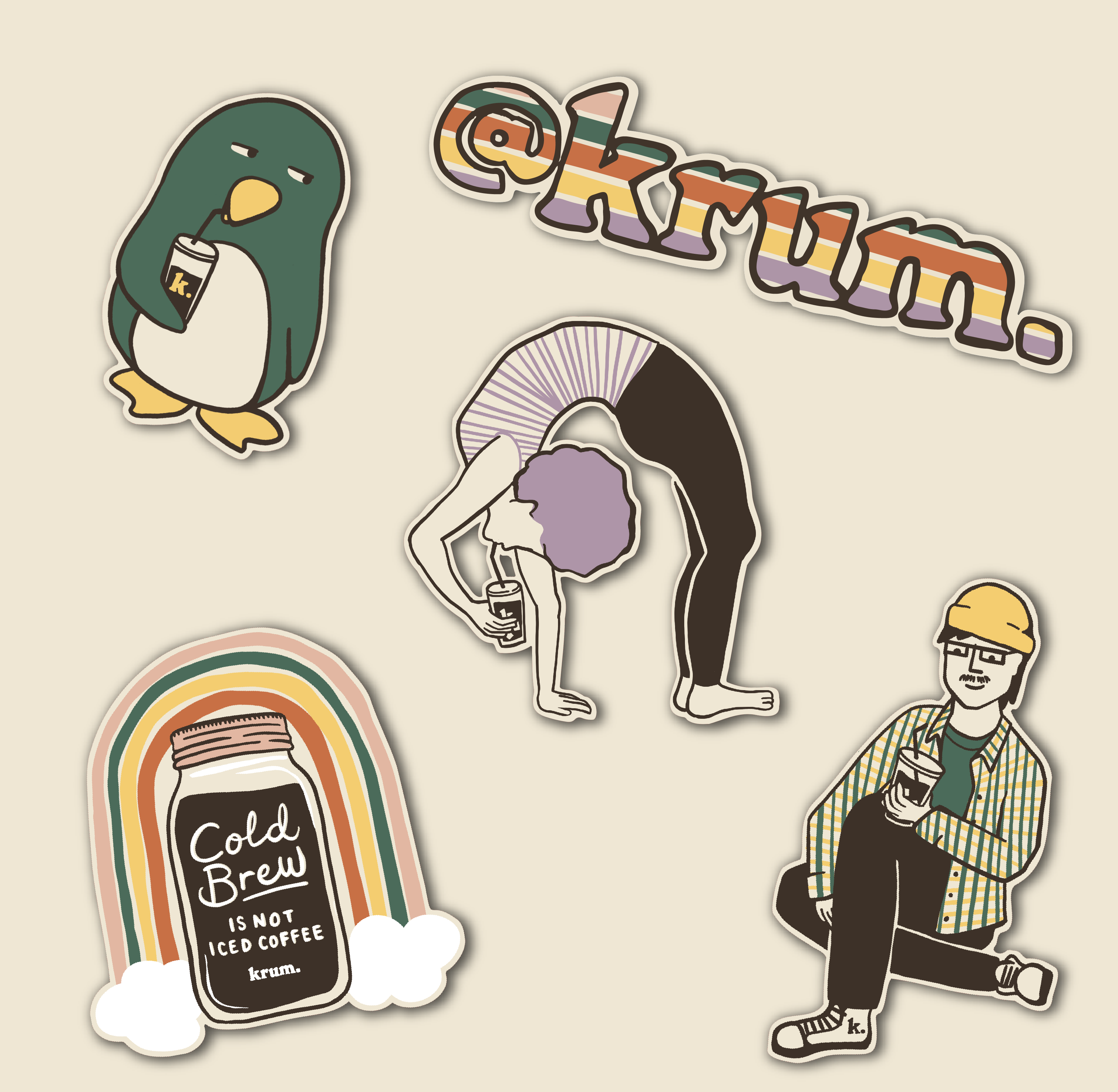Krum also sells stickers to promote cold brew coffee. In addition to selling coffee, it is working to grow awareness about cold brew, since not many people have tried it nor know what it is.