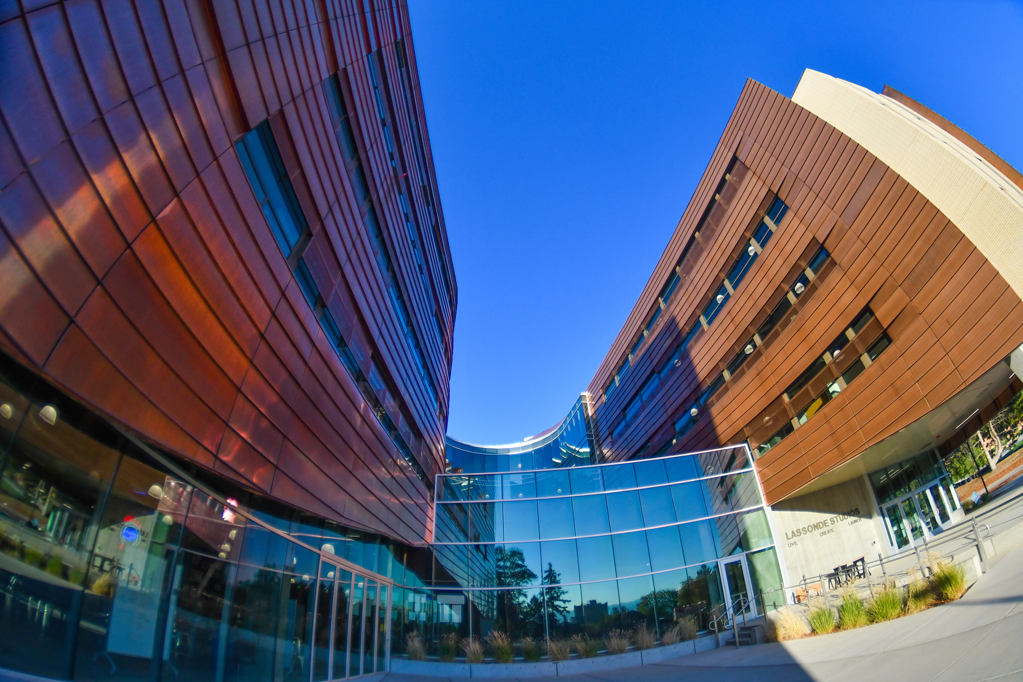 Take a look at our new photo gallery of the Lassonde Studios exterior. The $45 million building is clad in copper that will change color over time. All students at the University of Utah are welcome to live, create and launch in the building. Students moved into the building on Aug. 18. All are welcome to a dedication for the building on Sept. 22 at 12:30-1:30 p.m. Learn more at lassonde.utah.edu/studios.