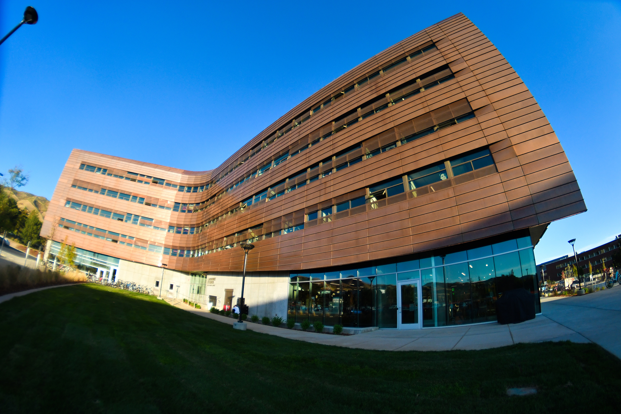 Take a look at our new photo gallery of the Lassonde Studios exterior. The $45 million building is clad in copper that will change color over time. All students at the University of Utah are welcome to live, create and launch in the building. Students moved into the building on Aug. 18. All are welcome to a dedication for the building on Sept. 22 at 12:30-1:30 p.m. Learn more at lassonde.utah.edu/studios.