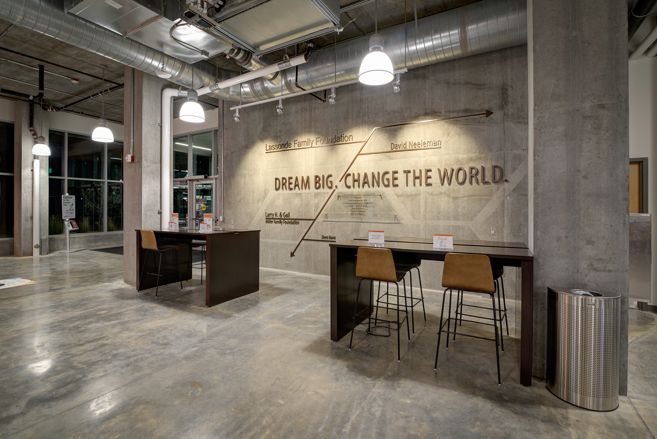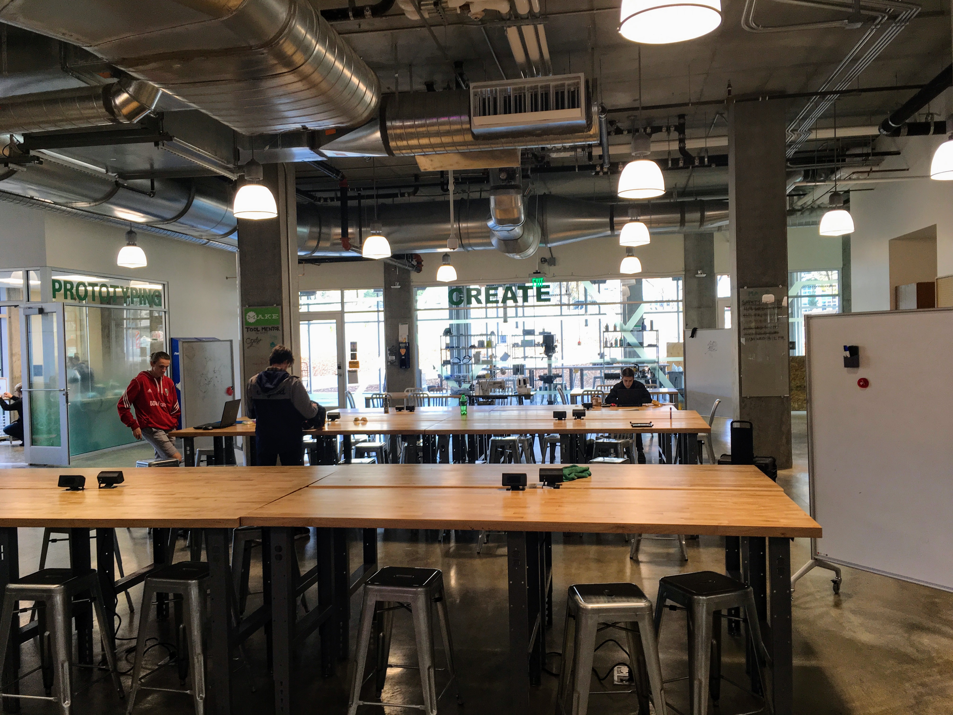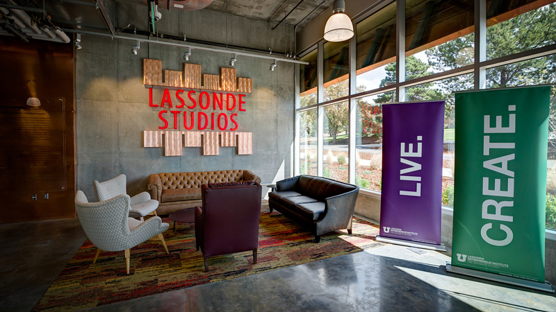 The first floor of Lassonde Studios is the Neeleman Hanger. This floor is open to all students at the University of Utah: