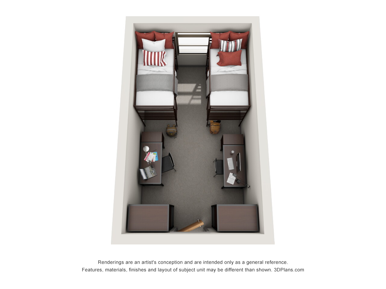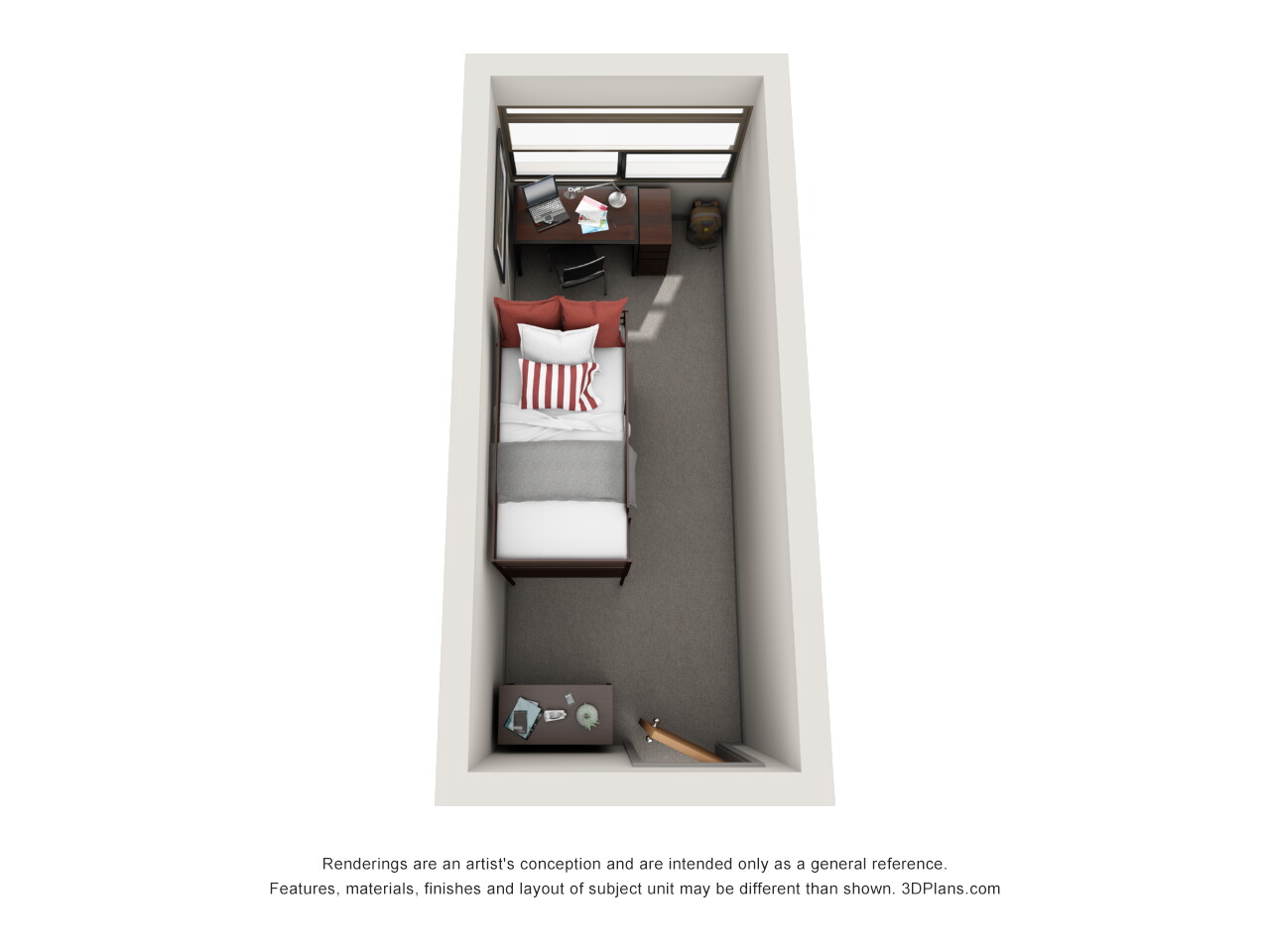 Lassonde Studios has four housing types — lofts, pods, singles and doubles. The images show occupied student rooms with personal items. For a list of included amenities see our amenities list, housing options page and floor plans below: